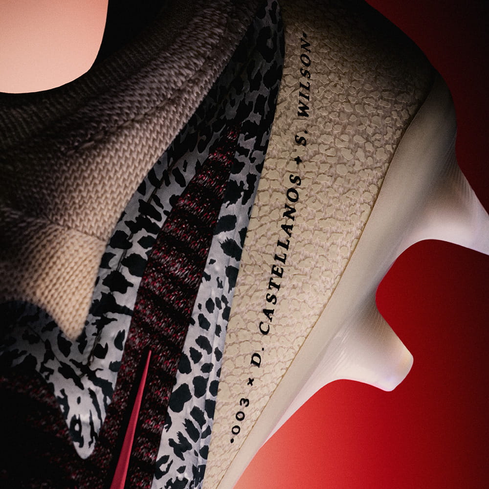 ナオミ・ギルマやパトリシア・ギハーロのような、“異次元のコントロール”を持つアスリートたちを称えたシリーズ。深みのあるバーガンディカラーに、アニマルプリントから着想を得たグラフィックを組み合わせ、ピッチでの攻撃性と、常識を超えていくプレースタイルを表現しています。
