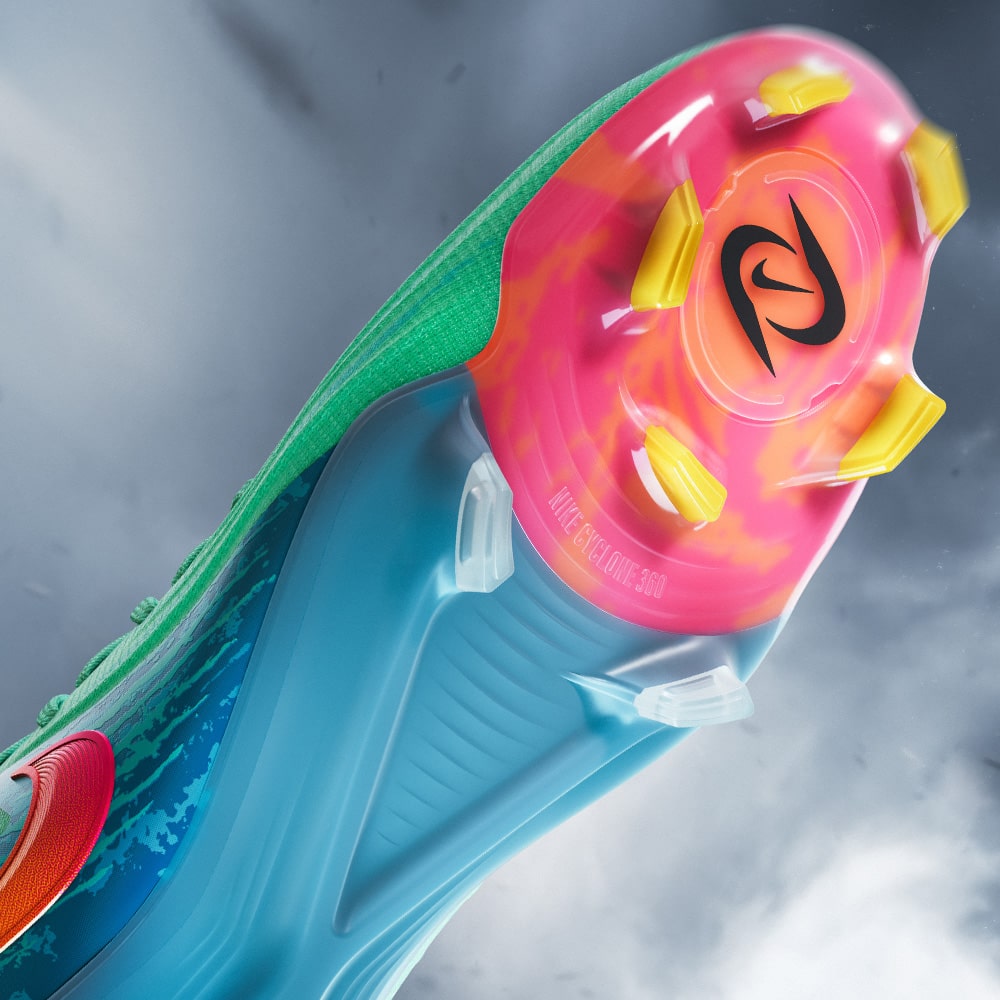 ナイキ サイクロン 360を採用しています。それにより、切り込むときの敏捷性を高め、回転トラクションを軽減することで、プレイヤーは俊敏かつ正確に自信を持ってピッチ上で動けるようになります。ゲームの激しさが増してもしっかりと安定感をキープし、スピードのあるカットインを可能にします。
