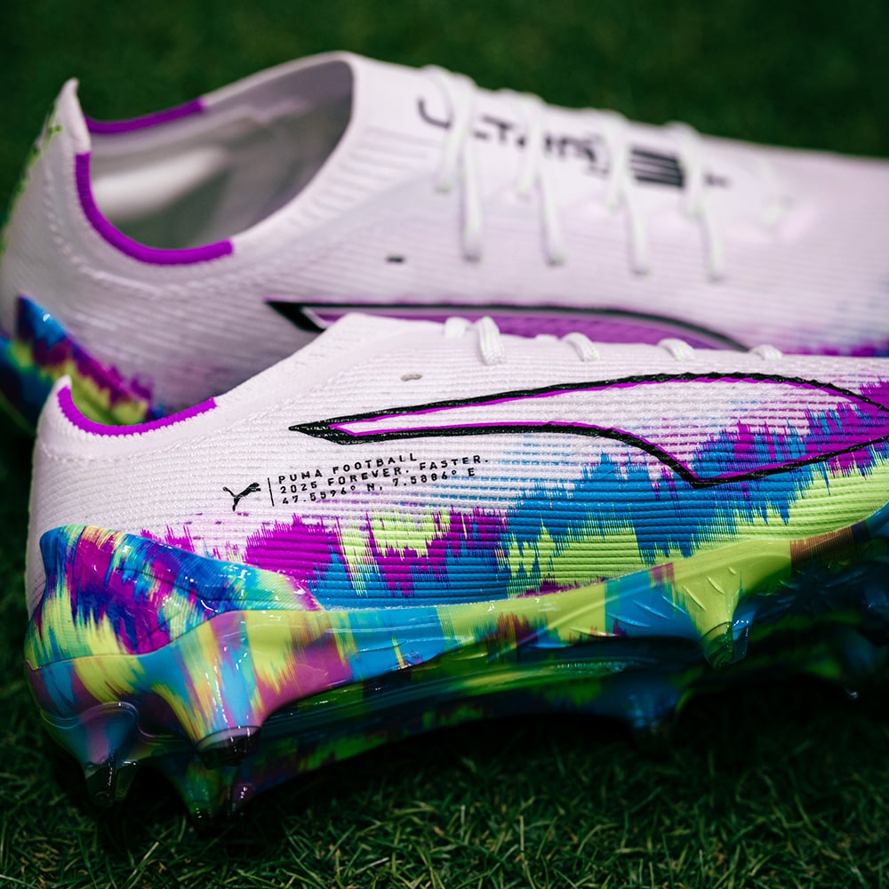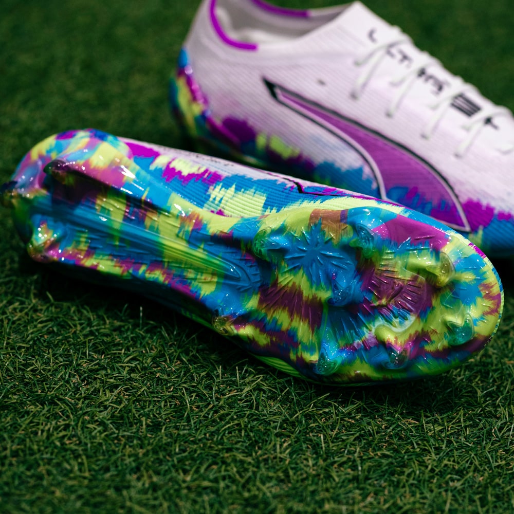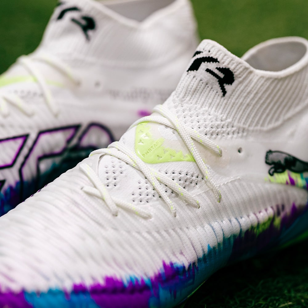 ULTRAの為に開発された、プーマ独自のアウトソール。軽量なPebaxをベースにピッチを掴み、そして強力な蹴り出しと加速力を生み出す革新的なスタッドシステムを採用。エネルギーリターンを最大化し、更なる加速を生み出す。 学術的な研究から多くのテストを繰り返し開発されたT字型の『FastTrax』スタッドは、加速、ターン、クイックなフェイントに対して、最適な蹴りだしをもたらす。