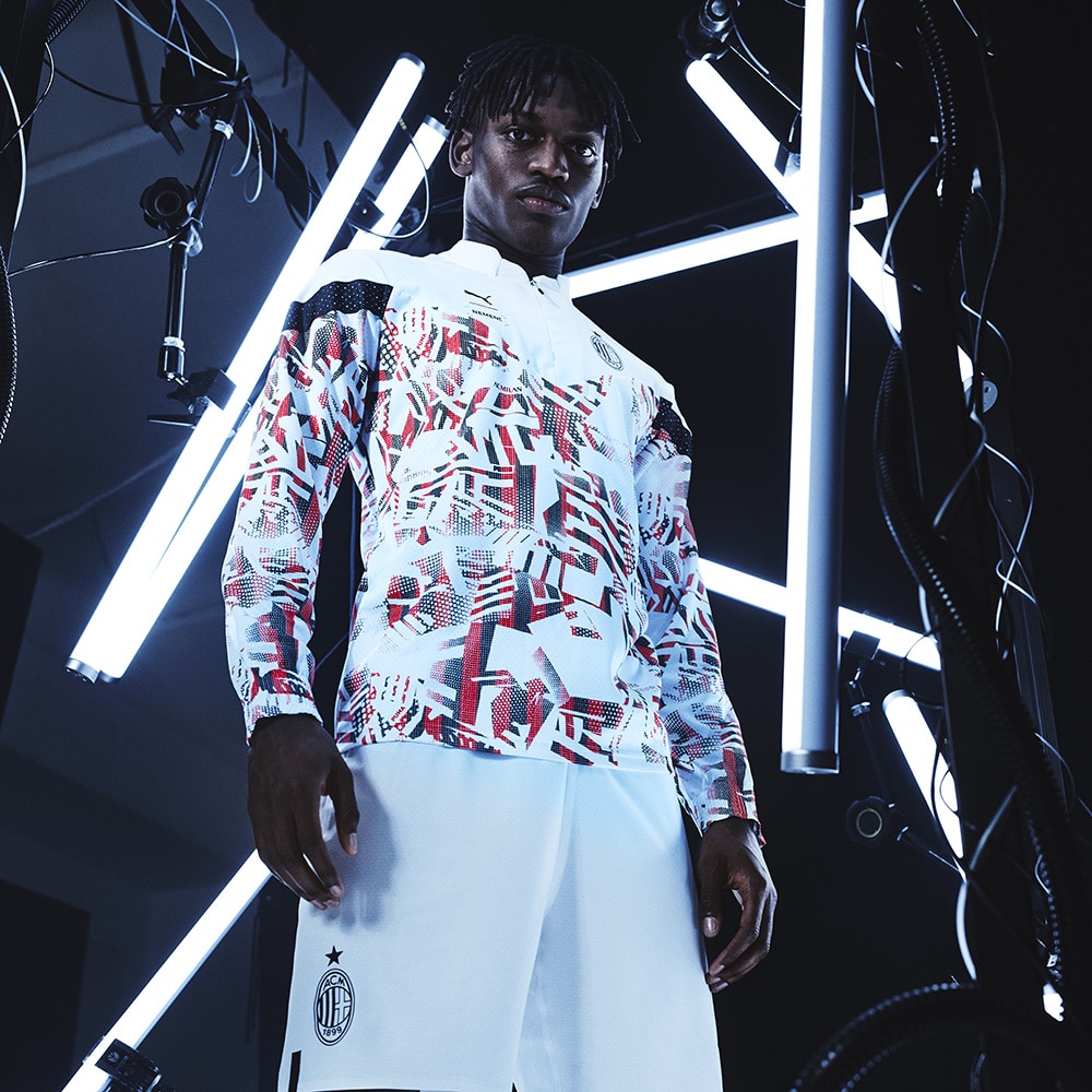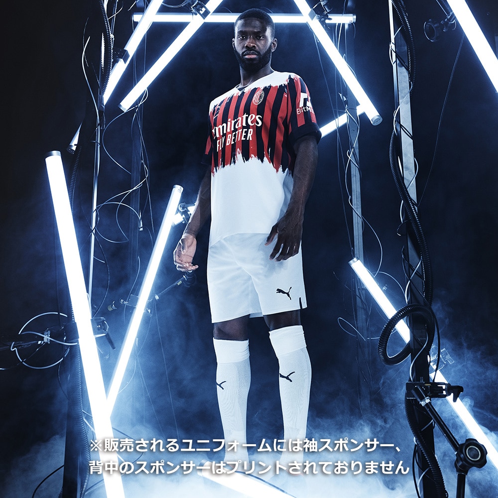 ACミランの象徴的な赤と黒のストライプに、先進的なデザインとテクノロジーが融合。