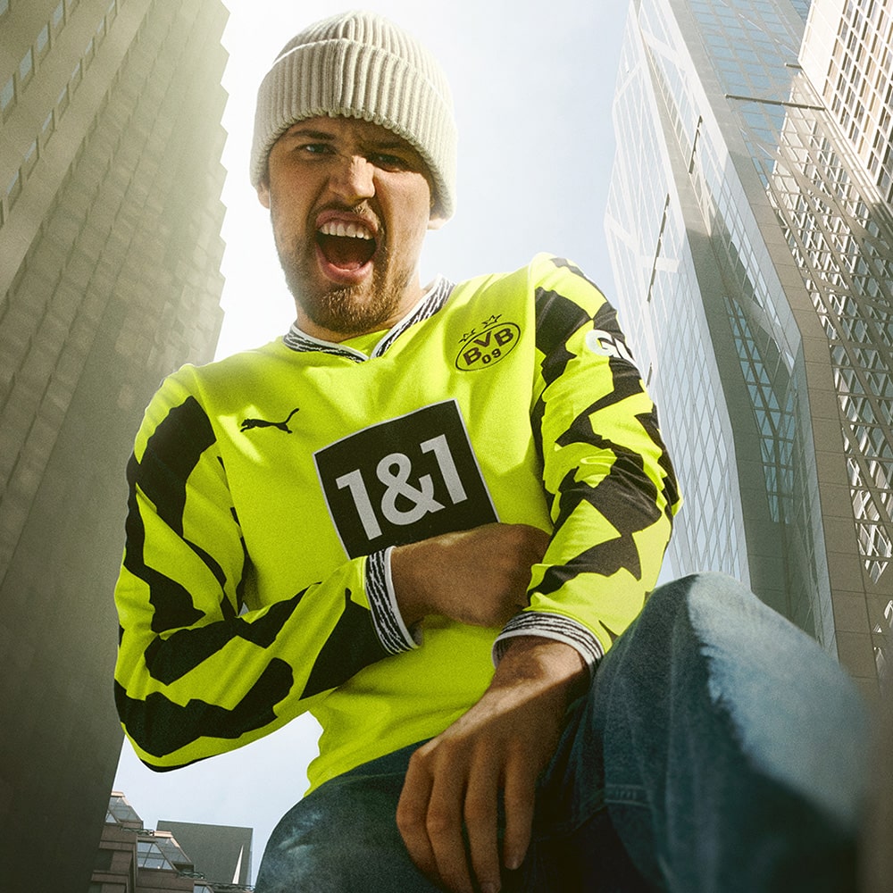 BVBバッジ、プーマキャットロゴ、洗練されたメッシュパネルを採用しています。