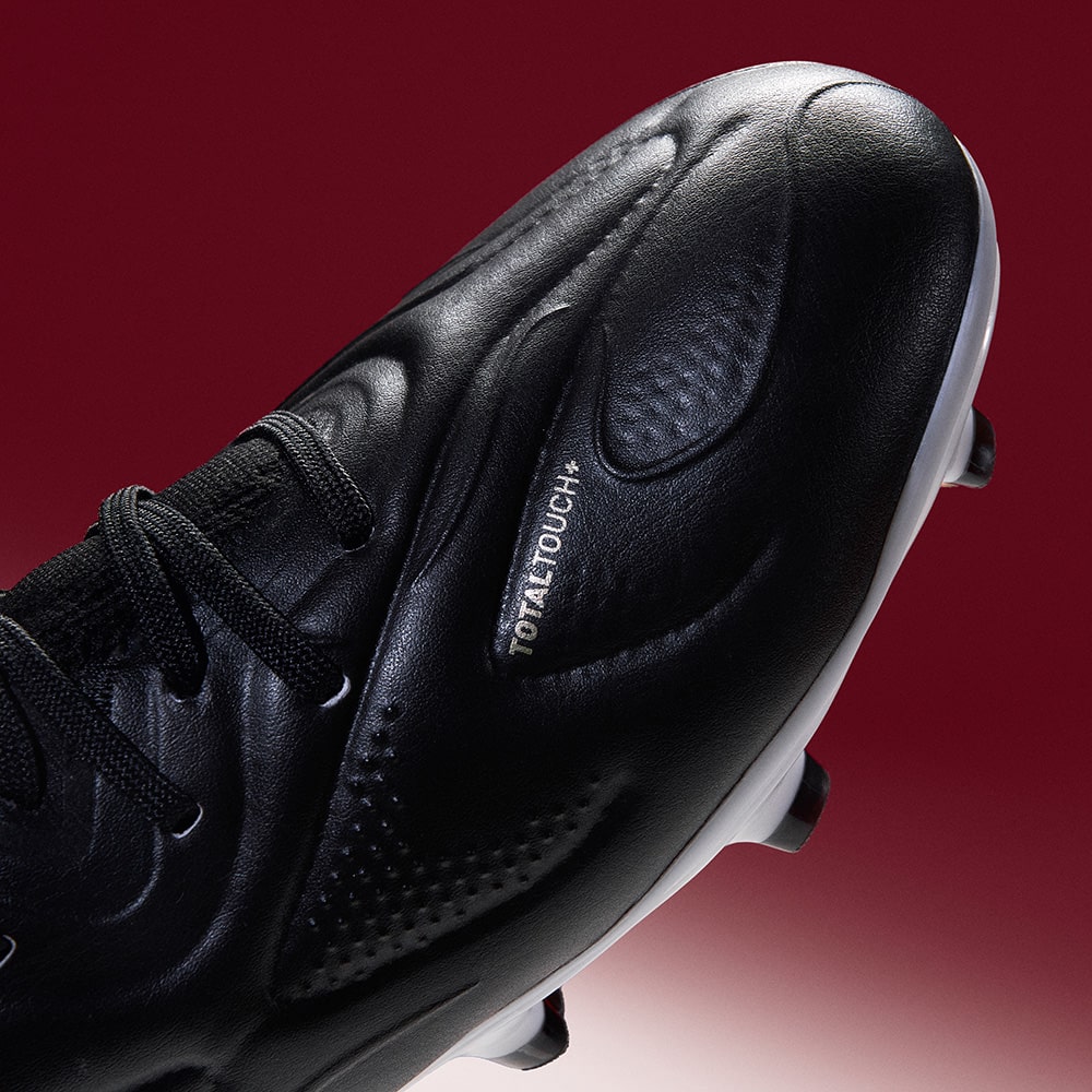 それぞれの強みを活かした5層レイヤーが天然皮革の構造に近いフィット感を生み出し、高度なコントロールを可能にする。レザーのような柔らかさでありながらも伸縮機能によって保形力に効果を発揮し、フィット感は常にフレッシュな状態を維持する。加えてアッパー表面に加工されたコーティングは、雨からスパイクを守りながら、グリップ機能も備えることでコントロール機能を向上。革新素材が生む、極上のフィット感とコントロール性能。動物由来ゼロで、本物以上のリアルを。