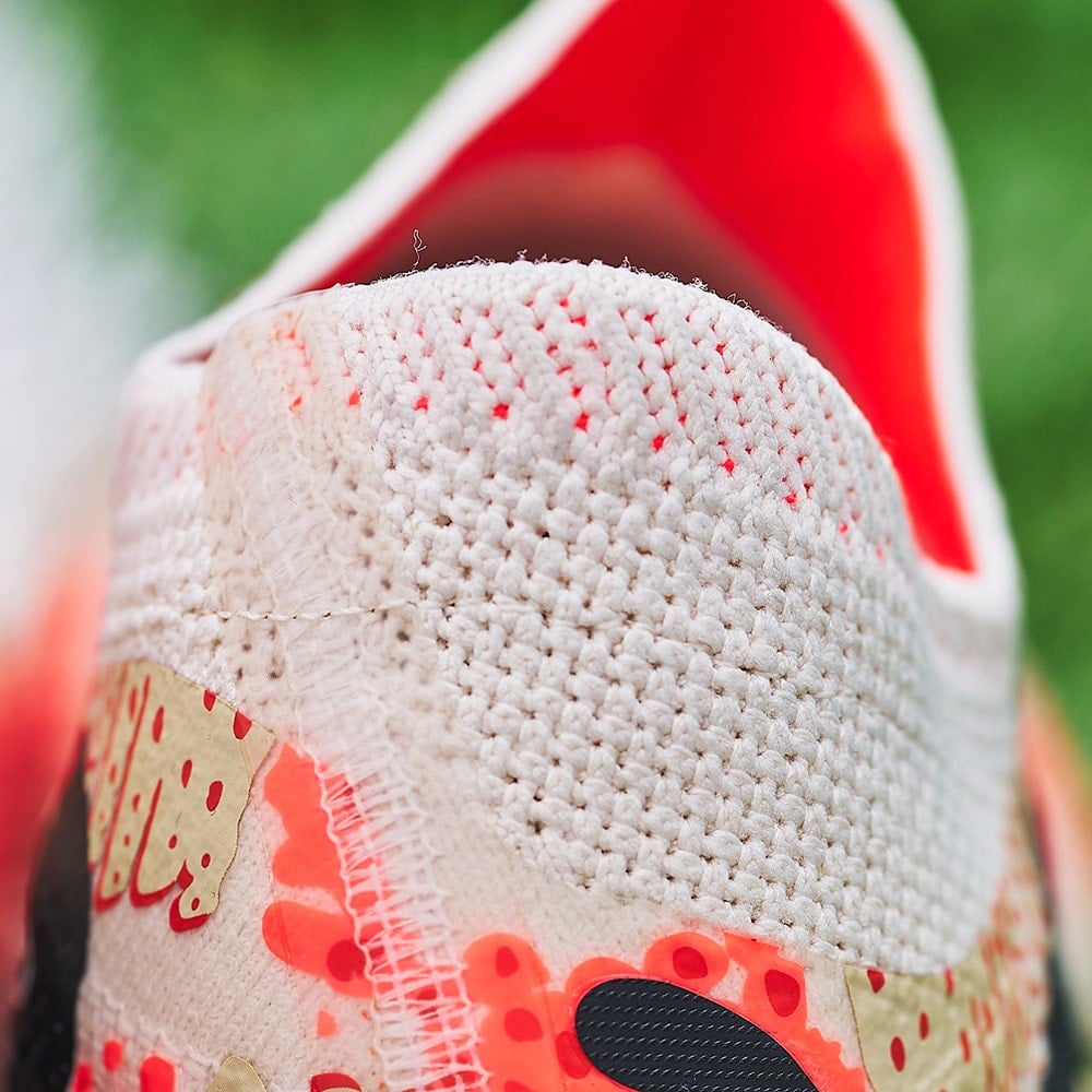 硬度の異なる素材を使用したアウトソールがあらゆる方向への鋭いステップをサポート密度の異なる2種類のPebaxナイロンから構成される新しいアウトソールユニット『DYNAMIC MOTION SYSYEM』。前足部は推進力と敏捷性を生み出す構造。軽量かつ柔軟性に優れるプレートに加えてつま先部分のスタッドはブレード型を採用。後足部は硬く強度のあるプレートにすることで安定性とグリップ力を発揮する。中足部から後足部にかけてのスタッドはダイアモンド型の特殊な形状となっており、安定性に加え様々なステップに対するグリップ力にも効果を発揮する。