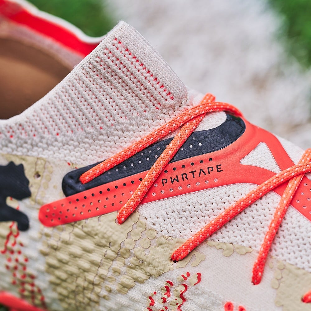 プレイヤーの足の動きを安定させ、あらゆる方向へのステップをサポートPWRTAPEは樹脂ベースで作られたPUMA独自のサポート素材。中足部に独特な形状で配置されたPWRTAPEは内側・外側にかかる力をサポートし次へのステップの力に変えていく。今回のPWRTAPEは人間工学に基づき幾度もの試験を重ね、さらにグレードアップ。最も効果的なPWRTAPEの搭載で足ブレを抑える。
