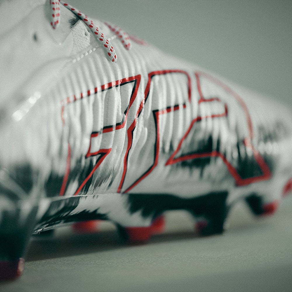 アッパーには洗練されたホワイトを基調とし、アウトソールには日本文化を象徴する「水墨画」から着想を得た唯一無二のデザインを採用しました。「FUTURE」は、勝利への情熱と果敢に挑み続けるプレーを象徴する“赤”をメインカラーに、そして「ULTRA」は、試合の勝敗を分ける冷静さと、水の流れのように研ぎ澄まされたスピードを象徴する“青”をメインカラーに採用しています。