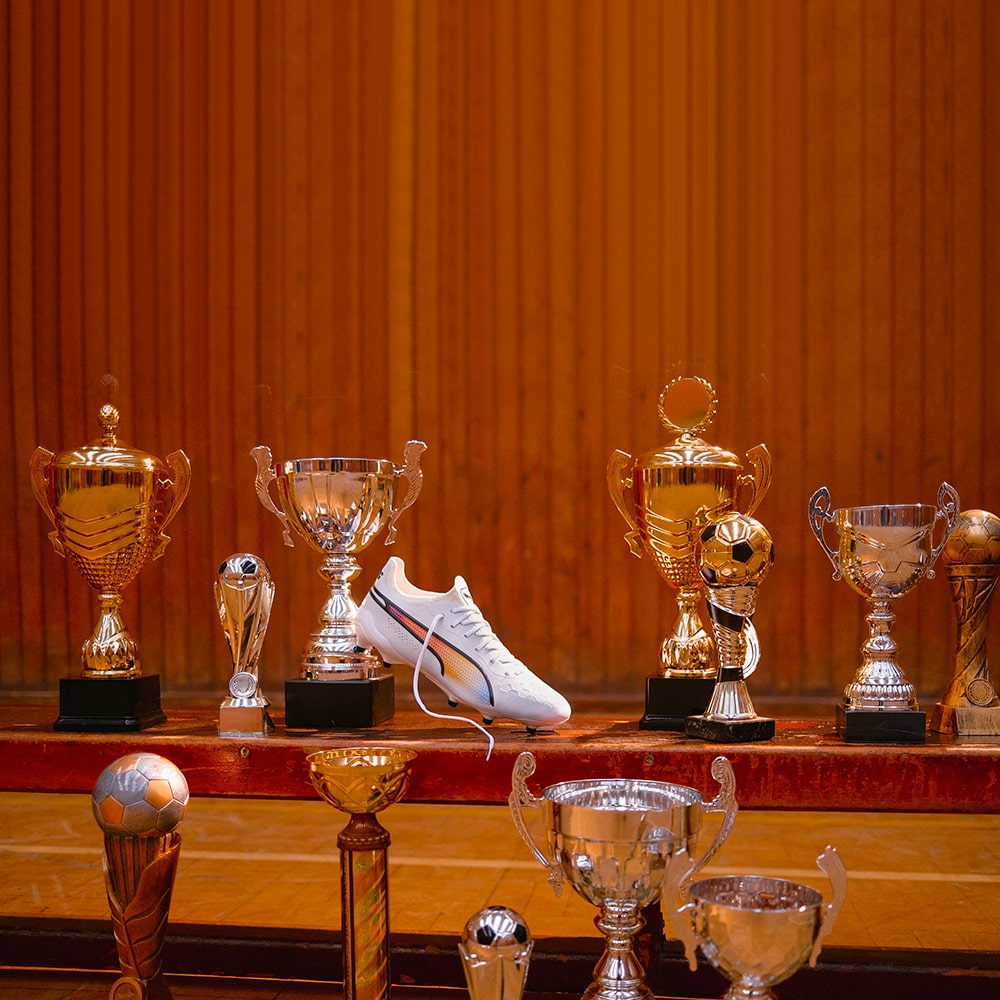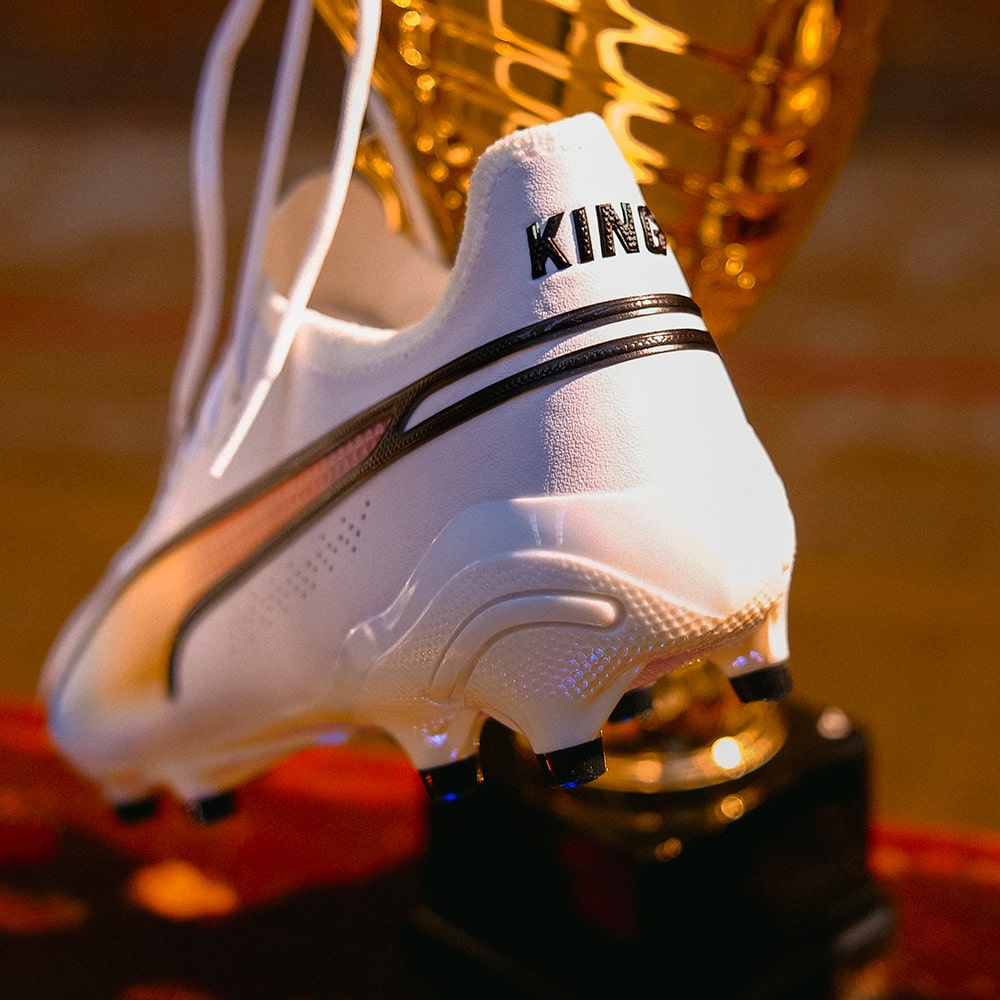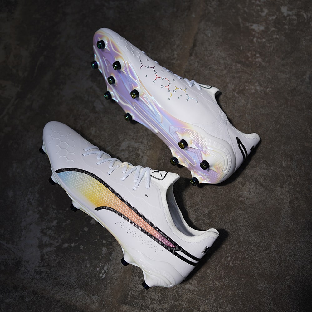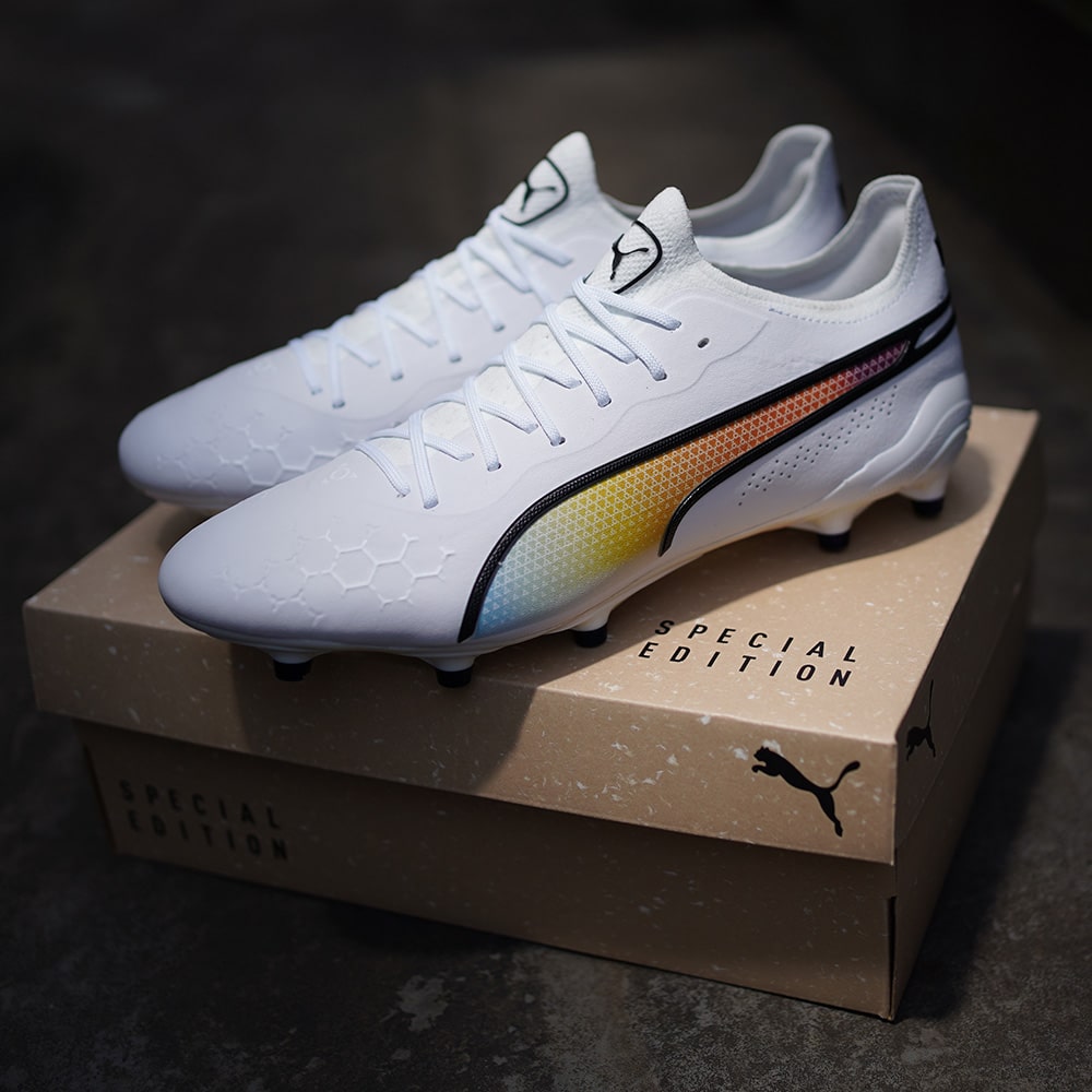 プーマ キングの2023春夏限定モデルが登場!プーマ キングを着用した偉大な選手たち(エウゼビオ、ペレ、ヨハン・クライフ、マテウス、ディエゴ・マラドーナ)を讃え、PUMA、KING、そしてフットボールそのものの歴史を共に作り上げた5人のアイコンのナショナルカラーを組み合わせた特別なカラーウェイ。