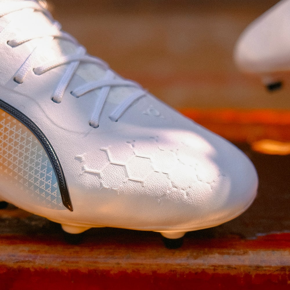 アッパーには『K-BETTER』と呼ばれる革新的新素材を使用。この新素材は繊維を絡め合わせたような作りになっていて、天然皮革の構造に最も近い非常に柔らかいアッパー。柔らかさを持ちながら、高い強度も持ち合わせているので、試合中にフィット感が崩れにくい事が最大の特徴となり、1試合を通して変わらないボールタッチ感も提供します。