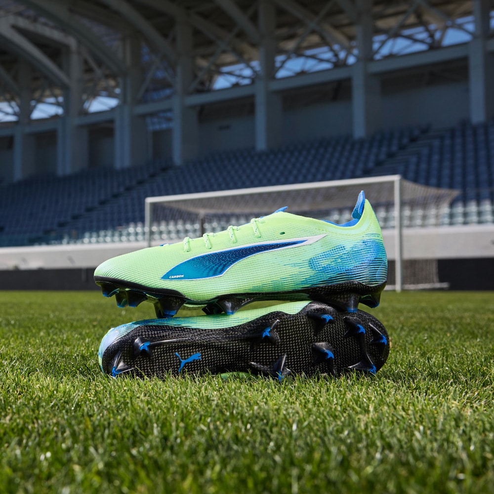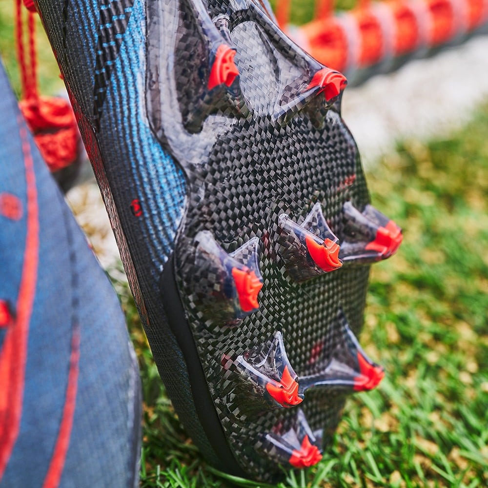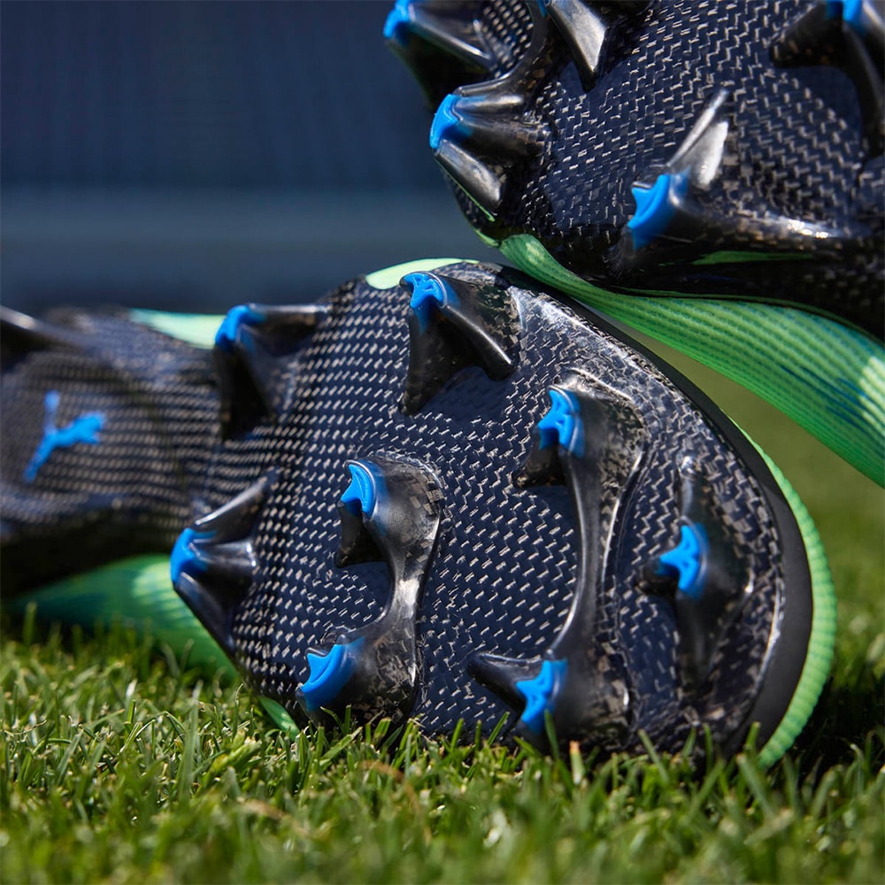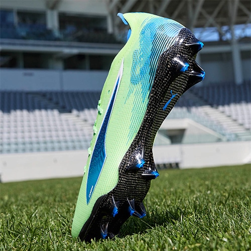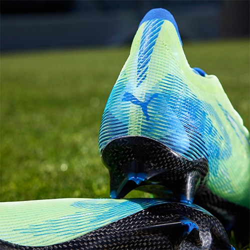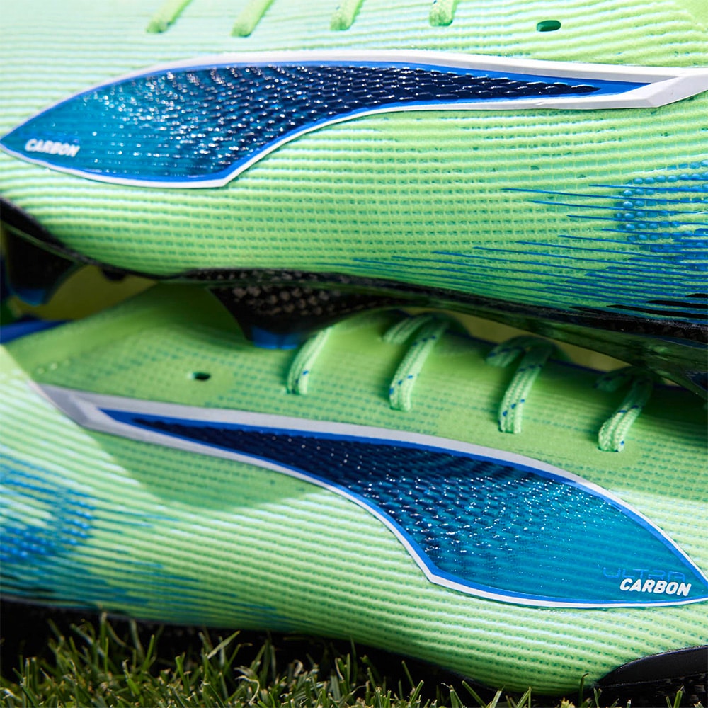 トラクション 学術的な研究から多くのテストを繰り返し開発されたT字型の「FastTrax」スタッドは、加速、ターン、クイックなフェイントに対して、最適な蹴りだしをもたらす。 スピードシステム カーボン ULTRAの為に開発されたプーマ独自の新アウトソール。弾力性のあるカーボンファイバー素材を組み合わせて素早い推進力を発揮しています。推進力は前モデルより32%向上しています。 ※カーボンを使用したアウトソールは限定モデルのみの仕様になります。