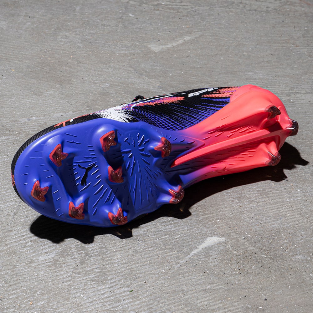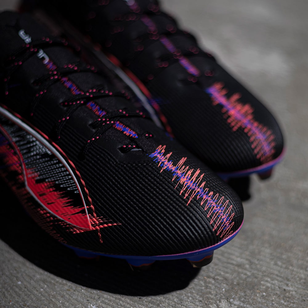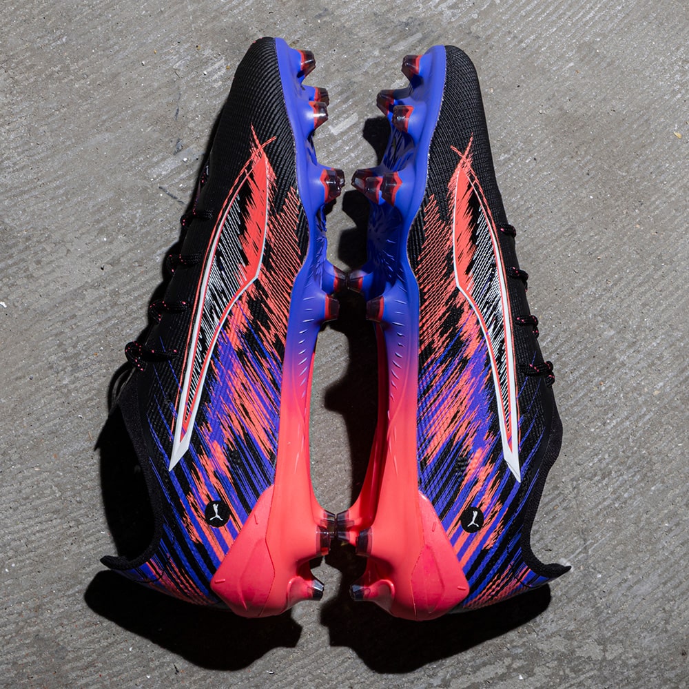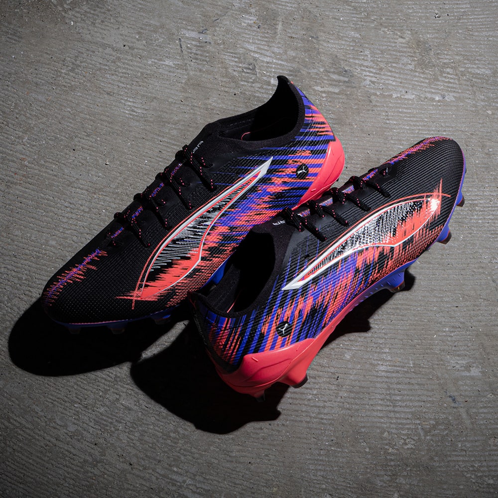 いずれのフィールドでも全てがあっという間に過ぎ去ります。F1の速さと、その音を融合し表現したコラボレーションモデルです。 自動車工学の頂点からインスピレーションを得ており、F1エンジンの音をイメージしたグラフィックと、スピード感を表現するようなぼかしたカラーが特徴です。フットボールピッチにおいても、フルスロットルで圧倒的なスピード感を表現します。