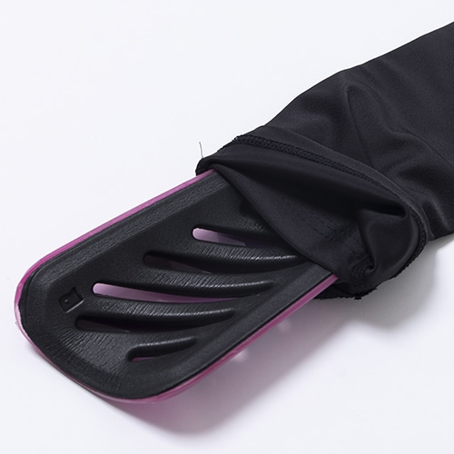 柔軟性・耐衝撃に優れたTPU ソフトシェル使用。デボス加工とパーフォレイトされたEVA 素材により高ショック吸収性を持ちながら、通気性に優れ軽量。フィット感と動きやすさが特徴のスリップポケットの付いたコンプレッションスリーブ。