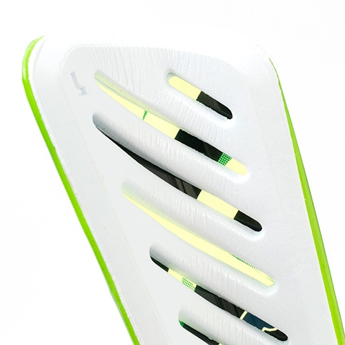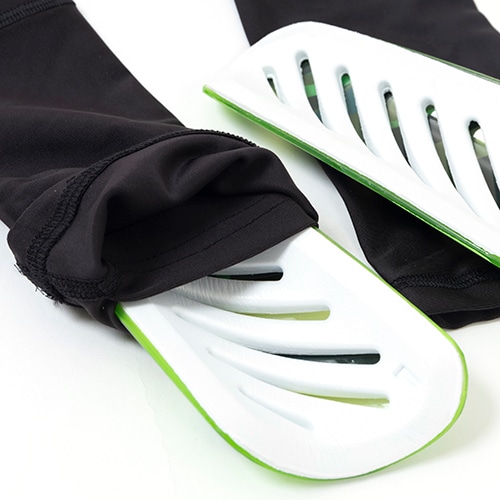 柔軟性・耐衝撃に優れたTPU ソフトシェル使用。デボス加工とパーフォレイトされたEVA 素材により高ショック吸収性を持ちながら、通気性に優れ軽量。フィット感と動きやすさが特徴のスリップポケットの付いたコンプレッションスリーブ。
