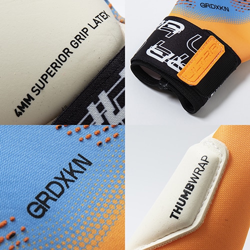 ●ボールに触れることの多い親指部分にはラテックスを増量したサムラップ。
