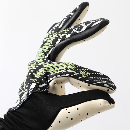 予想以上に速くなる!モデルチェンジした『ULTRA(ウルトラ)』の迷彩柄プロトタイプ「DAZZLE(ダズル) PACK」のフットウェアとデザイン連動した、ネガティブカットGK(ゴールキーパー)グローブ。現代のゴールキーパーのあらゆるニーズを満たし、それを上回るように設計されています。特に通気性、フィット感、グリップ力については最高のパフォーマンスを発揮するためのテクノロジーを搭載しています。