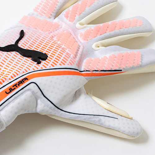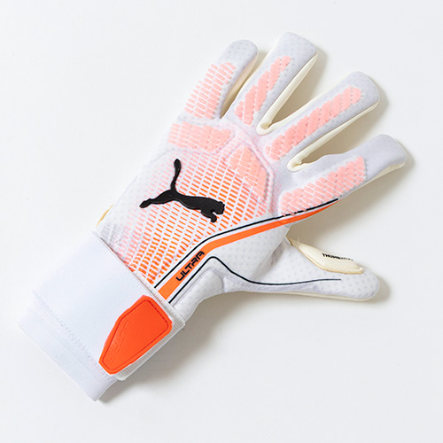 - 春夏の新色コレクション「UNLIMITED(アンリミテッド)PACK」ののフットウェアとデザイン連動した、PUMA「ULTRA(ウルトラ)」シリーズのハイブリッドカットGK(ゴールキーパー)グローブ。最高の装着感、可動域の拡大、集中力を高め、現代のゴールキーパーのあらゆるニーズを満たすために設計されたグローブ。