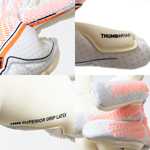 ●4mmのスーペリアグリップラテックスパームが、どんな天候でも素晴らしいグリップ力を発揮。