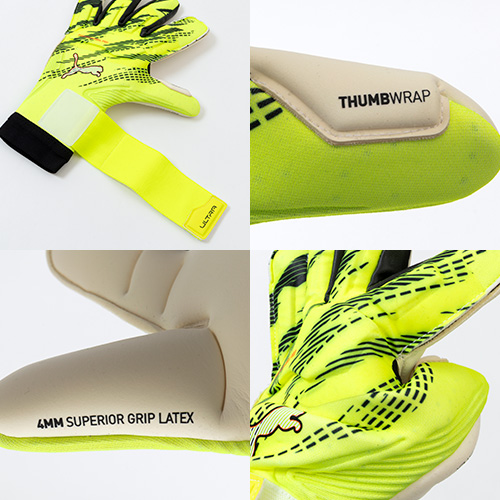 - フットウェアとデザイン連動した、PUMA「ULTRA(ウルトラ)」シリーズのハイブリッドカットGK(ゴールキーパー)グローブ。