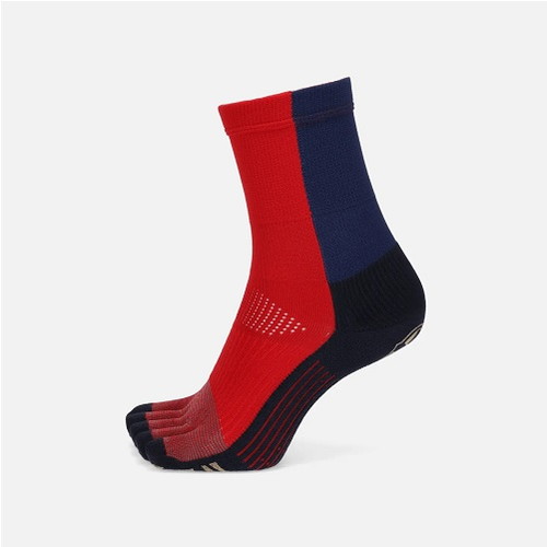 ●指をしっかり包みこみ、また少しでも着用した違和感を減らすために非効率な「立体製法」で指先を立体的に編み立てて、着用時のストレスを無くし、全ての指が独立して動くのでより地面をしっかり掴み、運動性を高めている。
