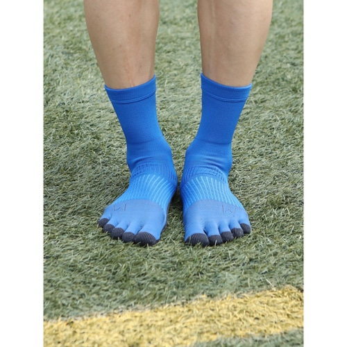 着用時のストレスを無くし、全ての指が独立して動くのでより地面をしっかり掴み、運動性を高めている。