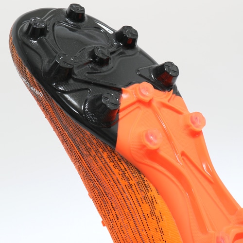 ●軽量性に優れたPebaxナイロンとポリウレタンを使用し、日本のハードグラウンドでテストを繰り返して最適なスタッドの口径サイズ・高さに調整。14本スタッドで突き上げの軽減しつつ、軽量性とグリップ力を強化。