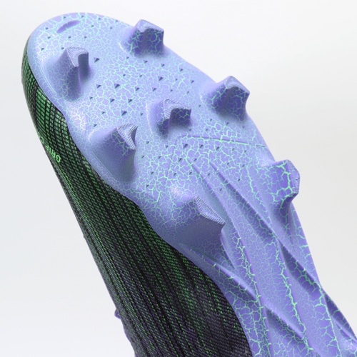 ●軽量性に優れたPebaxを使用し、ランニングスパイクからインスピレーションを得た11本のスタッドが爆発的なスピードを生み出す。前足部の独特な形状のスタッドは前方向への強いグリップを発揮し、後足部のスタッドは踏み込み時の安定性を保つ。