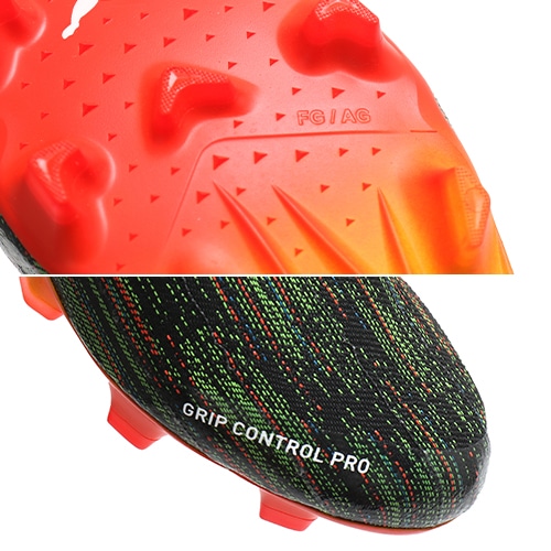 ●つま先部分に極薄のマイクロファイバーで作られたグリップ素材を配置。スピードに乗ったドリブルのコントロール、一瞬のボールコントロールなどをサポート。