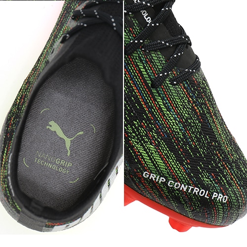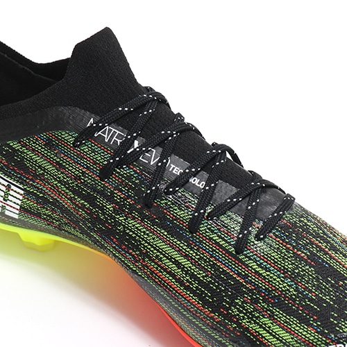 ●剛性と弾性を兼ね備えたアラミド繊維がサポートを強化し、弾性と柔軟性に優れるカーボン繊維がスムーズな屈曲と優れたボールタッチを生み出す、PUMA独自の軽量ウーブンアッパー。
