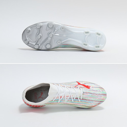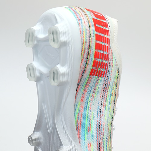 ●剛性と弾性を兼ね備えたアラミド繊維がサポートを強化し、弾性と柔軟性に優れるカーボン繊維がスムーズな屈曲と優れたボールタッチを生み出す、PUMA独自の軽量ウーブンアッパー。