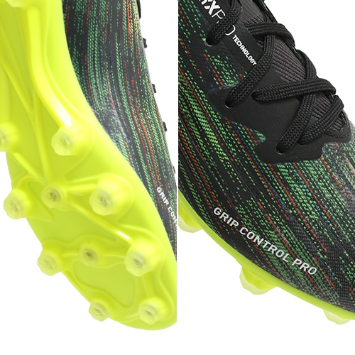 ●つま先部分に極薄のマイクロファイバーで作られたグリップ素材を配置。スピードに乗ったドリブルのコントロール、一瞬のボールコントロールなどをサポート。