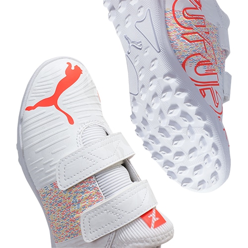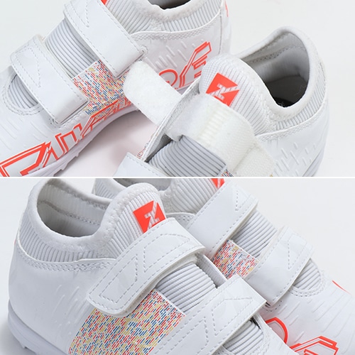 - 2021年春夏の新しいコレクションPUMA『SPECTRA PACK(スペクトラ パック)』、一瞬でゲームの流れを変える事ができるプレーヤーたちのために開発された「FUTURE Z(フューチャー ゼット)」のTT(ターフトレーニング)対応ジュニア用エントリーモデルトレーニングシューズのベルクロタイプ。