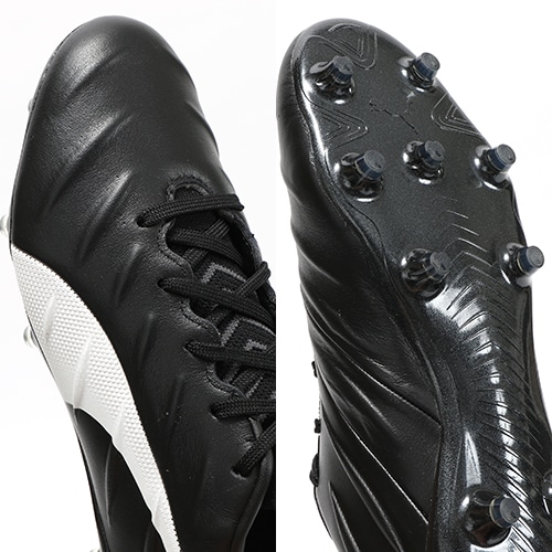 - かつての伝説的なプレーを讃え、コントロールが鍵を握る現代のプレーヤーのために作られた「PUMA KING(プーマキング)」のFG(ファームグラウンド)/AG(アーティフィシャルグラス)対応トップモデルスパイク。