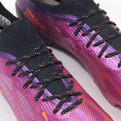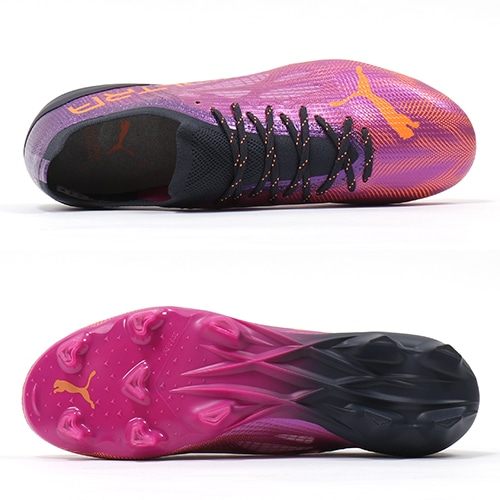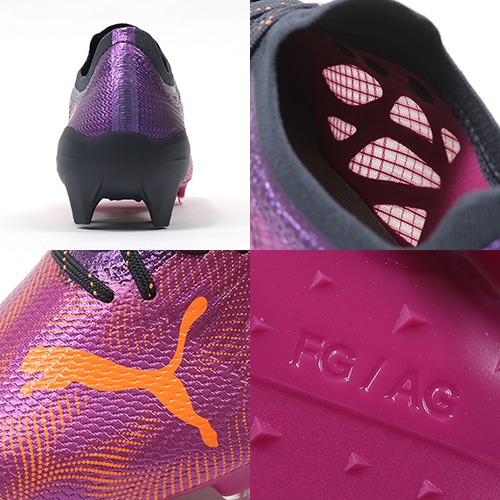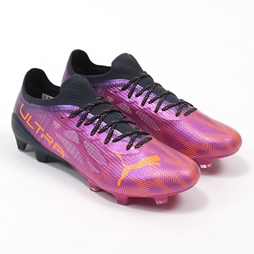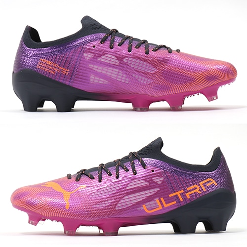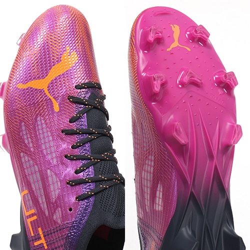 - 地面を揺さぶる声援と熱気からインスピレーションを得た鮮やかなカラーリングが特徴の『FLARE(フレア) PACK』が登場。軽さと速さを追求し、スピードケージの形状をアップデートしたPUMA「ULTRA(ウルトラ)」のFG(ファームグラウンド)/AG(アーティフィシャルグラス)対応トップモデルスパイク。