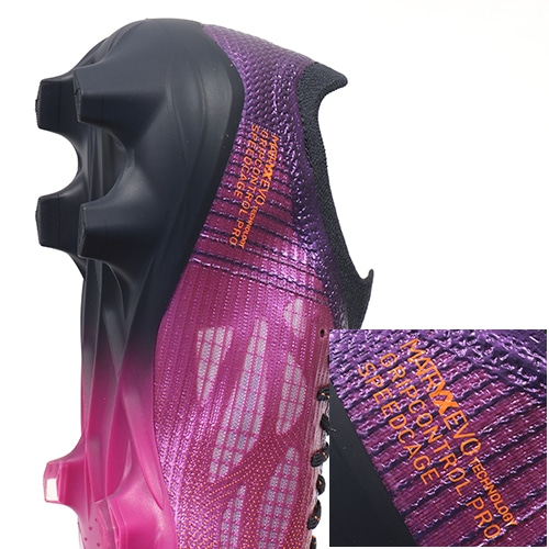 ●極薄のマイクロファイバーで作られたグリップ素材を全面に覆うことで、スピードに乗ったドリブルのコントロール、一瞬のボールコントロールなどをサポート。新しいライニング素材のスピードケージを配置し、シューズの保形性をサポート。