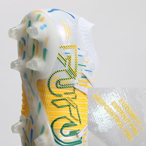 ●Grip Control Pro:極薄で軽量のマイクロファイバーで形成されたグリップ素材で前足部コーティング加工。アッパーの補強とともに、スィートスポットにボールコントロールを最大限に引き出しキックをサポート。