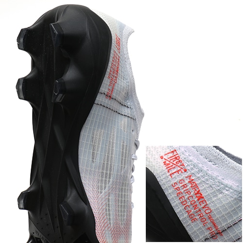 ●極薄のマイクロファイバーで作られたグリップ素材を全面に覆うことで、スピードに乗ったドリブルのコントロール、一瞬のボールコントロールなどをサポート。新しいライニング素材のスピードケージを配置し、シューズの保形性をサポート。