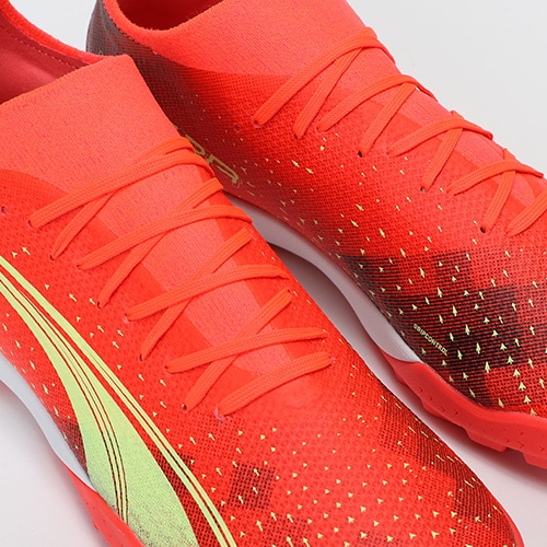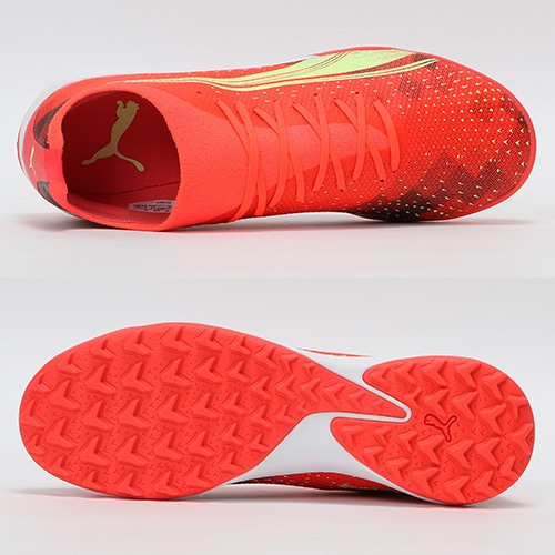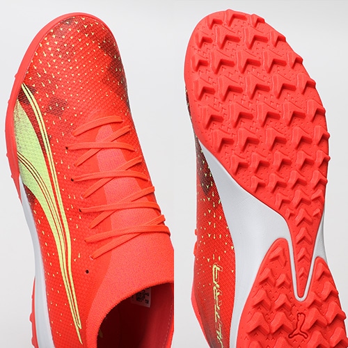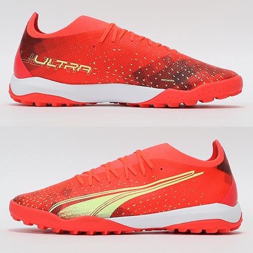 - 2022年10月14日(金)発売。2022年冬コレクション「FEARLESS PACK」が登場。電光石火、稲妻スピード。稲妻のようにピッチを駆けるプレーヤーのための超軽量モデル『ULTRA(ウルトラ)』のマッチモデルのTT(ターフトレーニング)対応トレーニングシューズ。