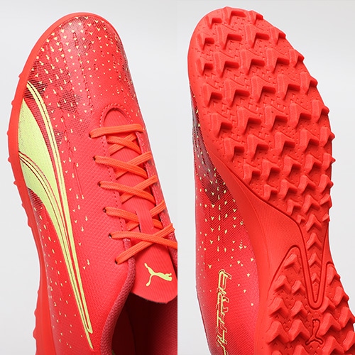 - 2022年10月14日(金)発売。2022年冬コレクション「FEARLESS PACK」が登場。電光石火、稲妻スピード。稲妻のようにピッチを駆けるプレーヤーのための超軽量モデル『ULTRA(ウルトラ)』のプレイモデルのTT(ターフトレーニング)対応トレーニングシューズ。