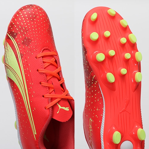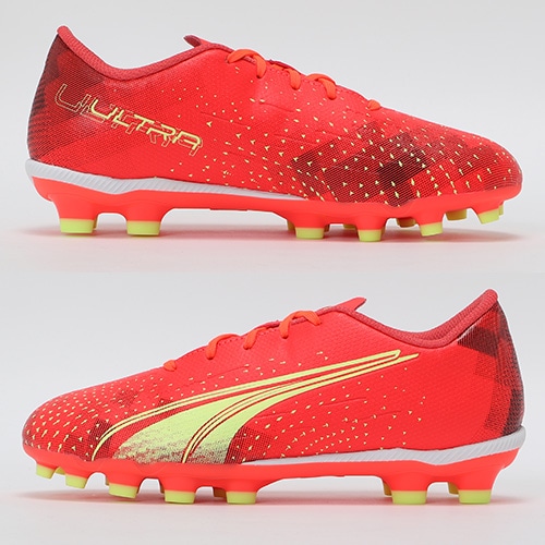- 2022年10月14日(金)発売。2022年冬コレクション「FEARLESS PACK」が登場。電光石火、稲妻スピード。稲妻のようにピッチを駆けるプレーヤーのための超軽量モデル『ULTRA(ウルトラ)』のプロモデルHG(ハードグラウンド)/AG(アーティフィシャルグラス)対応ジュニア用スパイク。