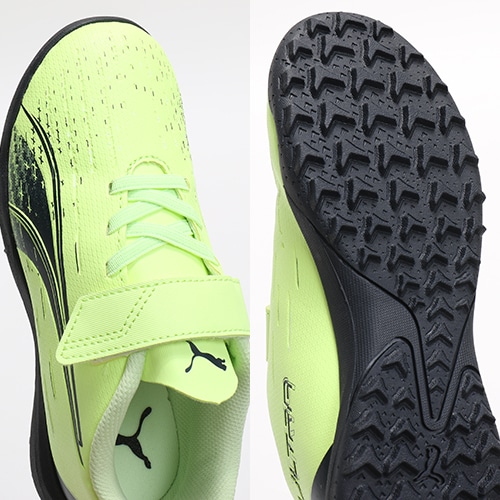 - 2022年秋冬コレクション『FASTEST PACK』。電光石火、稲妻スピード。稲妻のようにピッチを駆けるプレーヤーのための超軽量モデル『ULTRA(ウルトラ)』がモデルチェンジして登場。プレイモデルのTT(ターフトレーニング)対応ジュニア用トレーニングシューズのベルクロタイプ。