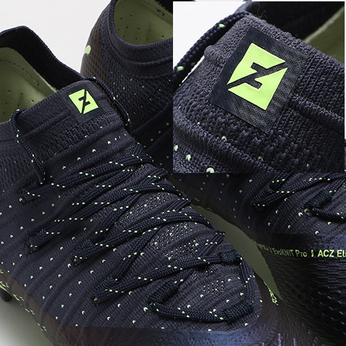 ●新たに搭載されたAdvanced Creator Zone Eliteは2つの機能を搭載した全く新しいニットアッパーユニット。外側は立体ドットプリントを施し、内側は薄く立体感のあるエンジニアドメッシュを配置し、新たなプレーを創り出す。