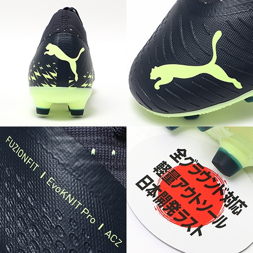 - 2022年秋冬コレクション『FASTEST PACK』が登場。縦横無尽、爆速ステップ!すべてのプレイヤーのあと一歩の速さを追求し、デザインアップデートしたPUMA「FUTURE Z(フューチャー ゼット) .4」のHG(ハードグラウンド)/AG(アーティフィシャルグラス)対応エントリーモデルスパイク。
