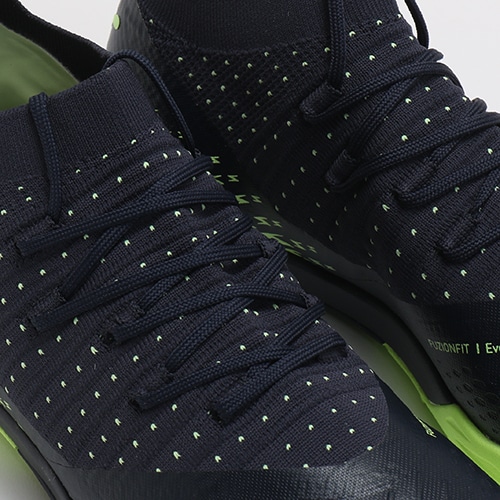 ●進化を遂げたFUSIONFITはポリウレタン素材で形成され、履き口付近はより快適なフィット感をもたらし、中足部はフィット感を更に高めることで様々な動きをサポートする。