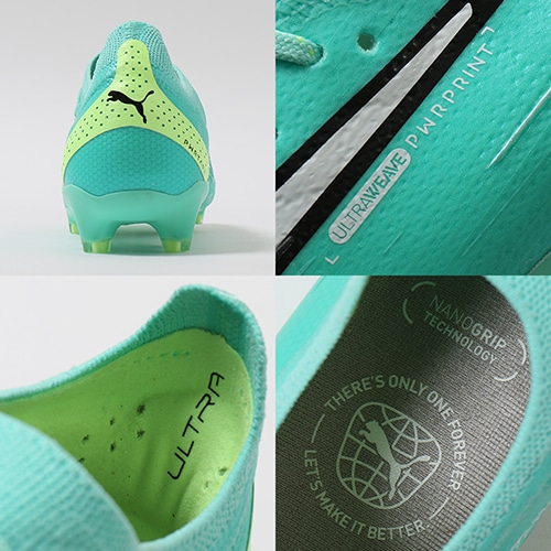 ●速さを追求して生まれたPUMA独自の新素材ULTRAWEAVE(ウルトラウィーブ)をアッパーに採用。従来のウーブン素材に比べ、圧倒的な軽さを実現。さらに、柔軟性にも優れるこの素材はアッパーと足の一体感を高めその効果を最大限に引き出し、その軽さと柔軟性が今までにないスピードを生み出します。