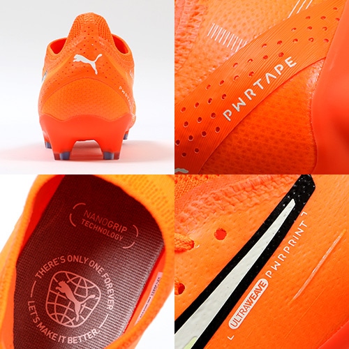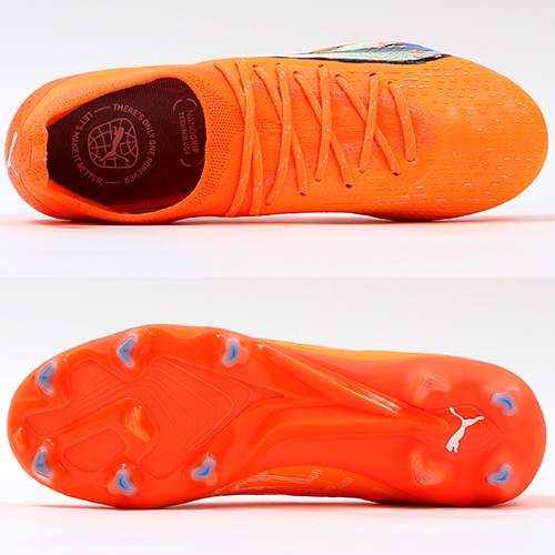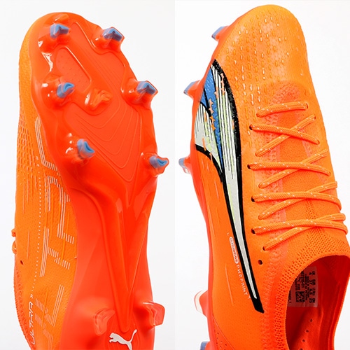 - 2023年春夏コレクション『SUPER CHARGE PACK』。電光石火、稲妻スピード。稲妻のようにピッチを駆けるプレーヤーのための超軽量モデル『ULTRA(ウルトラ)』がモデルチェンジして登場。アルティメットモデルFG(ファームグラウンド)/AG(アーティフィシャルグラス)対応トップモデルのウィメンズ向けスパイク。