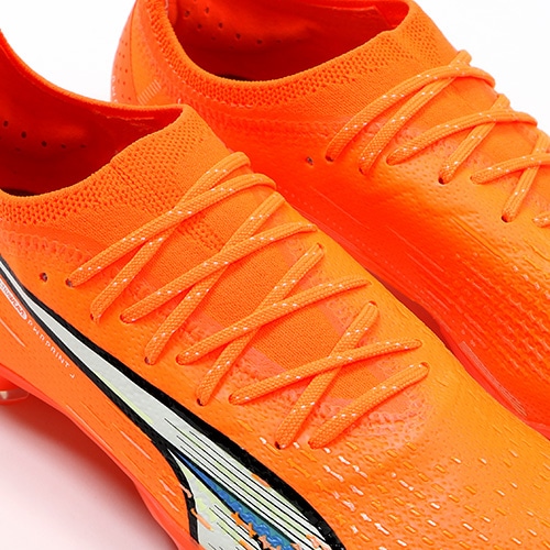 ●速さを追求して生まれたPUMA独自の新素材ULTRAWEAVE(ウルトラウィーブ)をアッパーに採用。従来のウーブン素材に比べ、圧倒的な軽さを実現。さらに、柔軟性にも優れるこの素材はアッパーと足の一体感を高めその効果を最大限に引き出し、その軽さと柔軟性が今までにないスピードを生み出します。