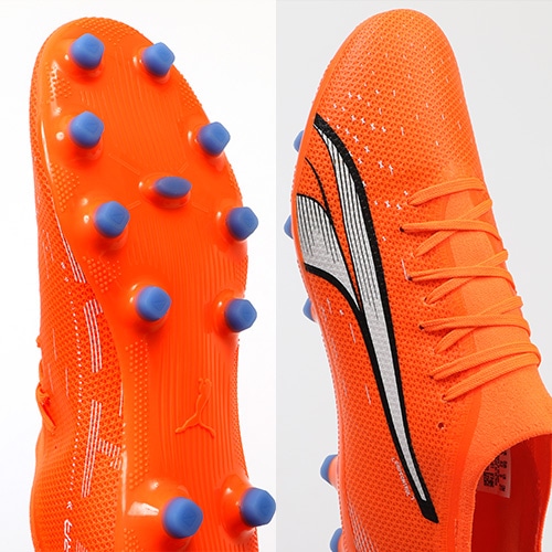- 2023年春夏コレクション『SUPER CHARGE PACK』。電光石火、稲妻スピード。稲妻のようにピッチを駆けるプレーヤーのための超軽量モデル『ULTRA(ウルトラ)』がモデルチェンジして登場。マッチモデルHG(ハードグラウンド)/AG(アーティフィシャルグラス)対応スパイク。