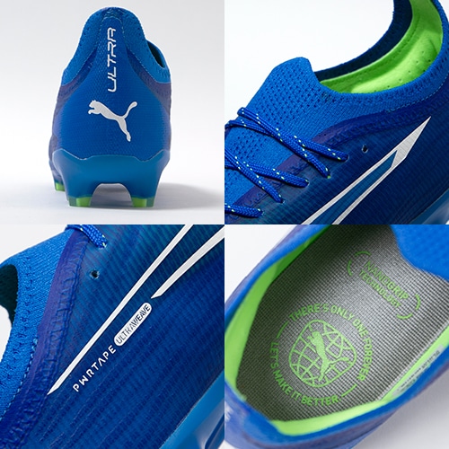 - 2023年9月28日発売(木)発売。冬の新色コレクション『GEAR UP(ギア アップ)PACK』が登場。電光石火、稲妻スピード。稲妻のようにピッチを駆けるプレーヤーのための超軽量モデル『ULTRA(ウルトラ)』がアッパーに「PWRTAPE」を搭載してアップデート。アルティメットモデルFG(ファームグラウンド)/AG(アーティフィシャルグラス)対応スパイク。
