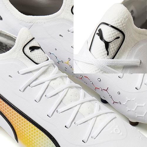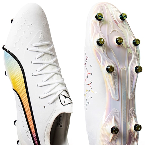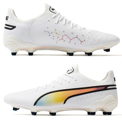 プーマ キングを着用した偉大な選手たちを讃えた限定モデルが登場。精密一閃、高機動コントロール。レザーのフィット感やボールタッチはそのままに、機動性を兼ね備えた「PUMA KING(プーマ キング)」のアルティメットモデルFG(ファームグラウンド)/AG(アーティフィシャルグラス)対応スパイク。