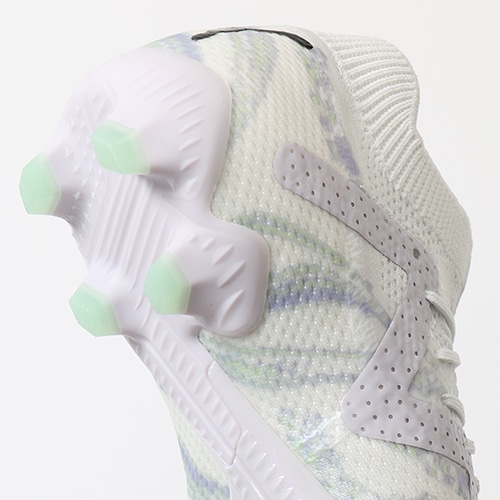 ●アッパー全体を軽量のメッシュ素材で構成したENGINEERED DUAL MESHアッパー 。ソフトなフィット感とクッショニングをもたらしボールコンロール性を高める。前足部は内側と外側で異なる特性をもち、外側はドリブルやパスに最適な効果を発揮する立体プリントを配置し、内側はより正確なボールコントロールを実現。