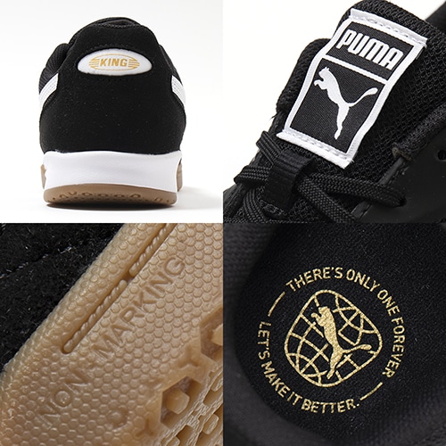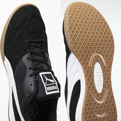 - モダンクラシックがコンセプトのpuma「KING TOP(キングトップ)」のIT(インドアコート)対応トレーニングシューズ。ヴァンプのデコステッチなどのクラシックな要素に加え、レトロなKINGロゴが、アクセントになっています。
