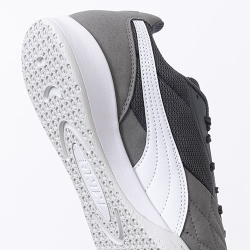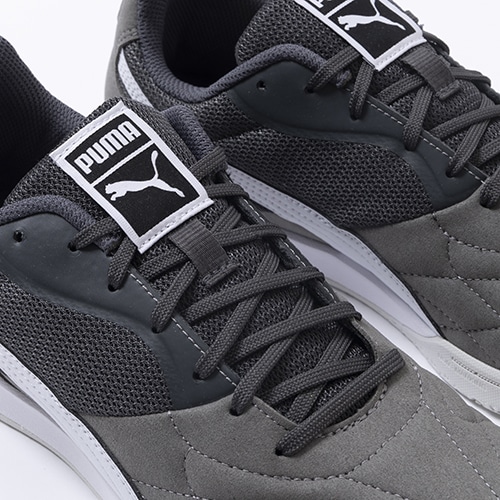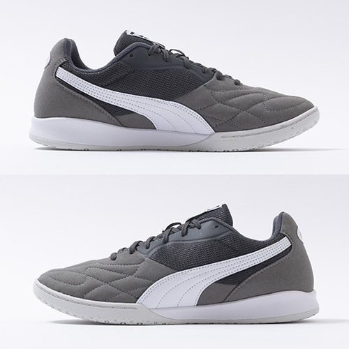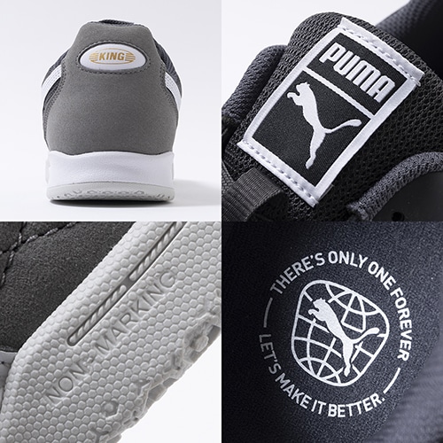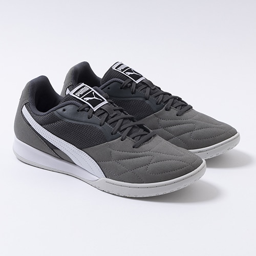 モダンクラシックがコンセプトのpuma「KING TOP(キングトップ)」のIT(インドアコート)対応トレーニングシューズ。ヴァンプのデコステッチなどのクラシックな要素に加え、レトロなKINGロゴが、アクセントになっています。